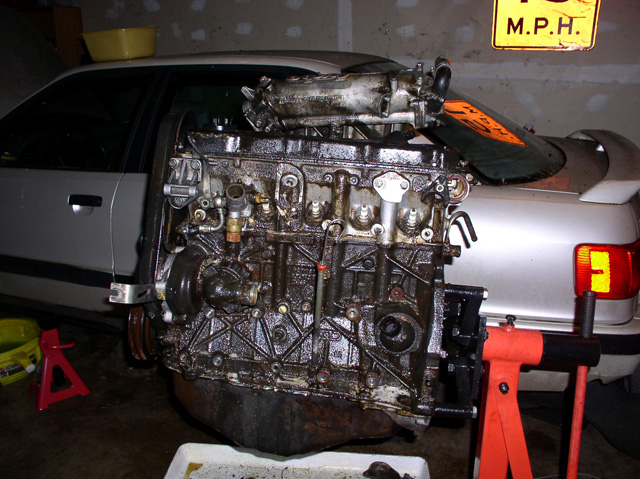 Front end is off the car, now it is just taking stuff off, and getting ready to pull the motor.