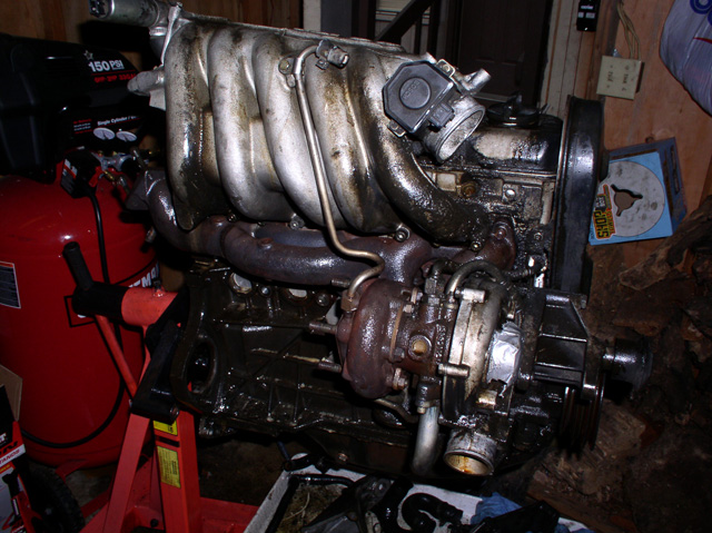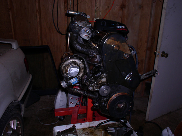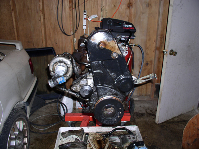 Long story short he found a donor audi with a turbo motor. Putting turbo motor into his audi. |