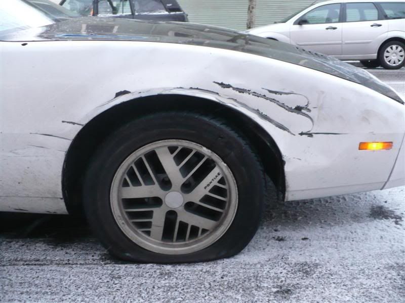 That's a little more than mine came to a couple of years ago with similar damage ($1500). Only difference besides being on the other side is your wheel was damaged too. I had a similar crease and then a little damage to the plastic by the headlight, my wheel only lost its center cap. _________________ 92 Camaro