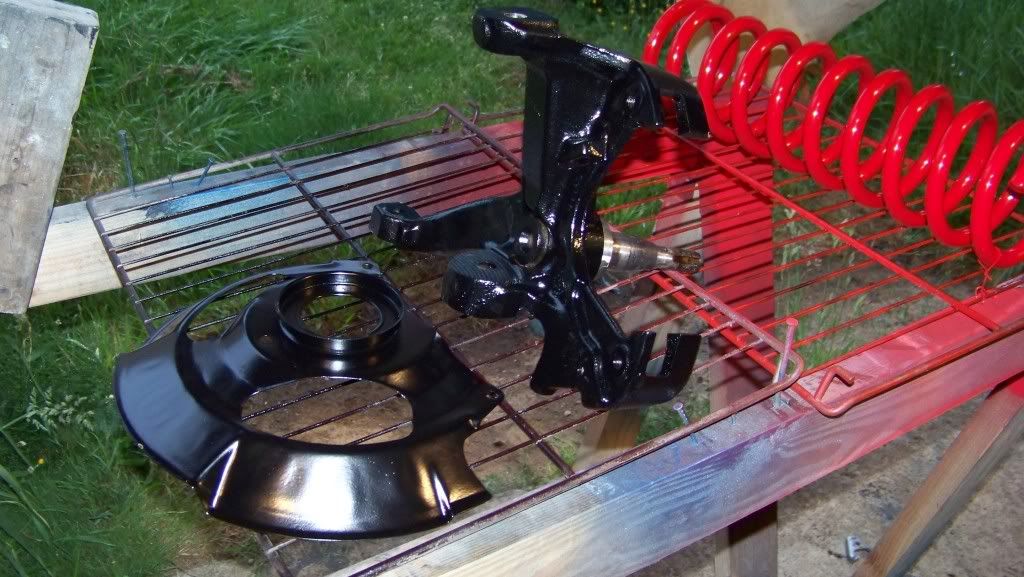 Then today I bead blasted and powder coated the spindle, backing plate, and spring. I'm still working on everything else.