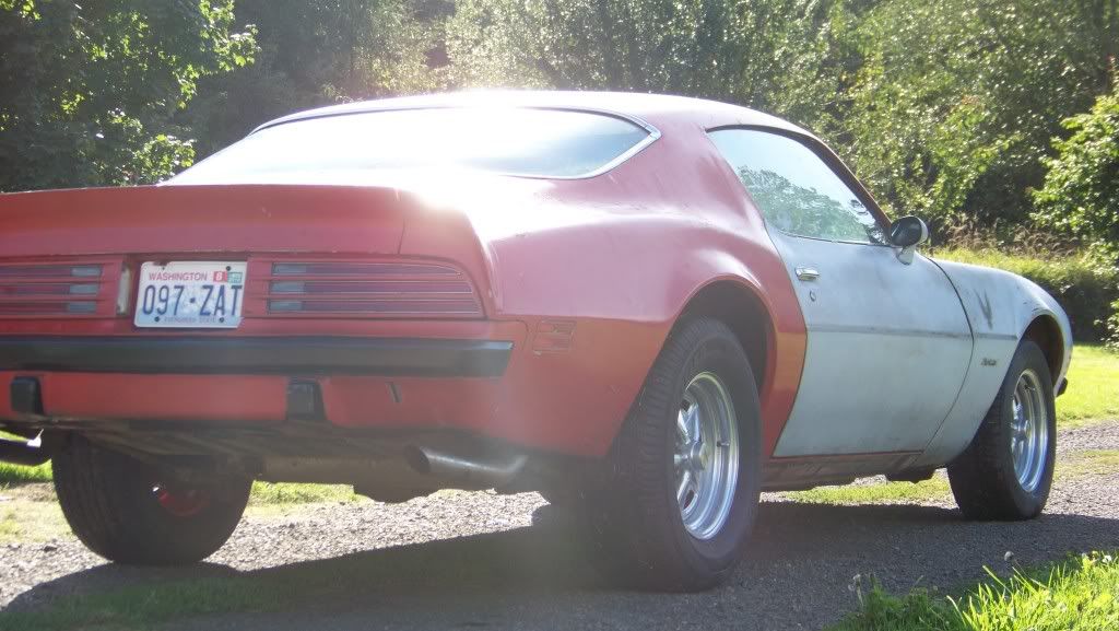 Not that there would be any doubters here.. But I pulled the 2nd gen out of the barn and drove it down the highway today! So it's official, I drove my car this summer! Made it by what? couple days? Got over to my dad's house and this terrible smell was rolling from it. I think my muffler is full of mouse nest. By the time I got home however it seemed to be gone. This thing is still pretty much a beater but the fun is starting! I can't beleive it drives straight down the road. Even after replacing the spindles and complete tie rod assembly from another car, cutting the springs, and replacing the ball joints/bushings. The steering wheel is 90* off, but you can let go of it and she goes straight down your lane. Anyway, here's a couple non-barn pics with the new sheetmetal and stance. I really like the RallyIIs I powdercoated too!