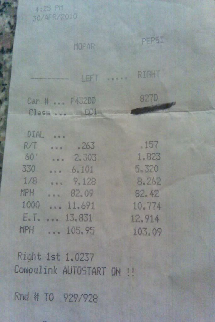 Thanks! I kinda looked in awe at my slip reading 12.9 @ 103 lol 3800 top end FTL.