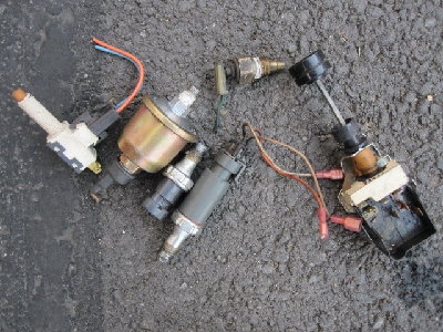 The one by the filter in 88 and before is an oil pressure switch, with two wires. This is the device that will force the fuel pump on when the fuel pump relay dies. If you ever have a car that when you turn the key, the pump does not prime, and it takes 15+ seconds of turning but will start... that is this oil pressure switch. The oil pressure switch does NOT kill the fuel pump if pressure is lost as some people think.