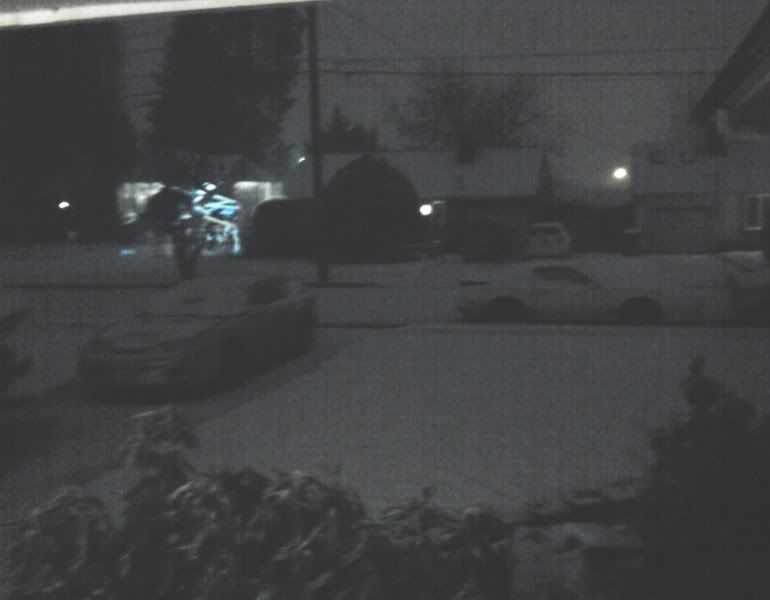 Had a couple inches down this morning, but it snowed throughout the day. In fact it just stopped a little bit ago. Camaro is in the shop, and the Ford is in the snow shed, so no worries there.  |