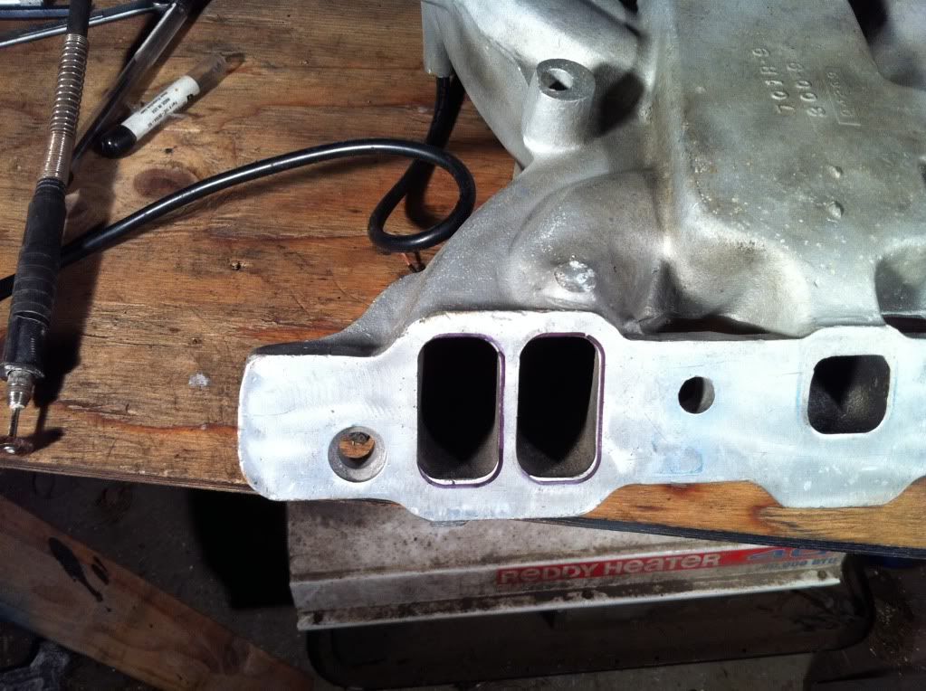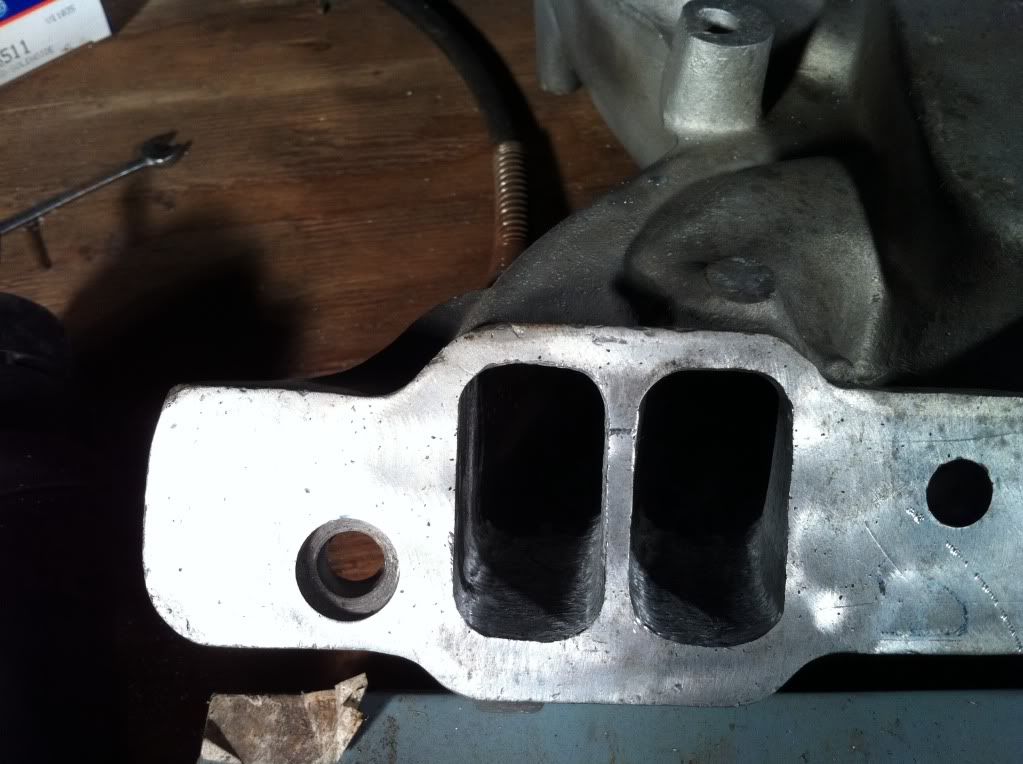 So I bought a different intake for my pontiac off of ebay awhile ago. Turned out to be cracked, got some of my money back and had it repaired. It's a holley street dominator. Supposedly my stock cast iron intake actually flows better then this single plane.. I dont really see how since its basically wide open. I mean you can actually see clear through to a port on the other side! So I'm doing some port matching and some clean up work. At the very least it will be lighter!