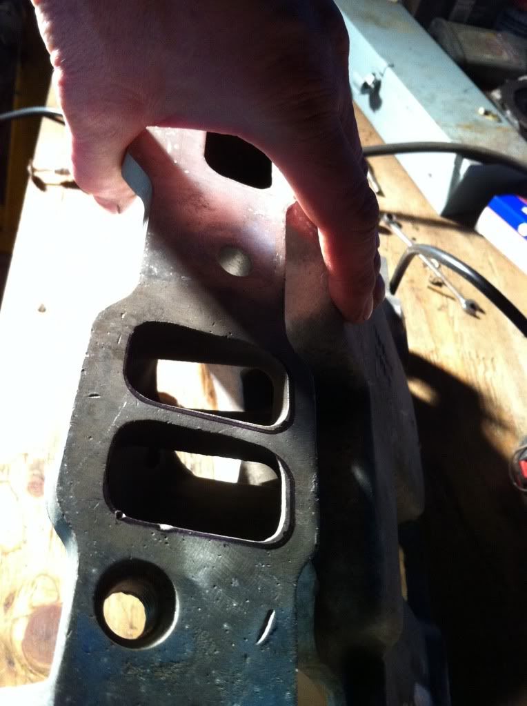 | After port matching I don't see much reason to port the rest. Just ground into the port a couple inches. Man the ports were off though! And they were smaller at the flange then just inside. Almost had a lip. |