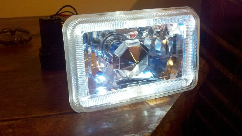 I ordered a set of conversion housings for H4 style bulbs and got a glass set with halos, very similar to Luke's minus this dumb city light thing that's gonna get yanked. I have to heat up the housing's and seperate them to put better LEDs in for the halos and get rid of their hot glue seal job i haven't made much progress i got them tonight at 7