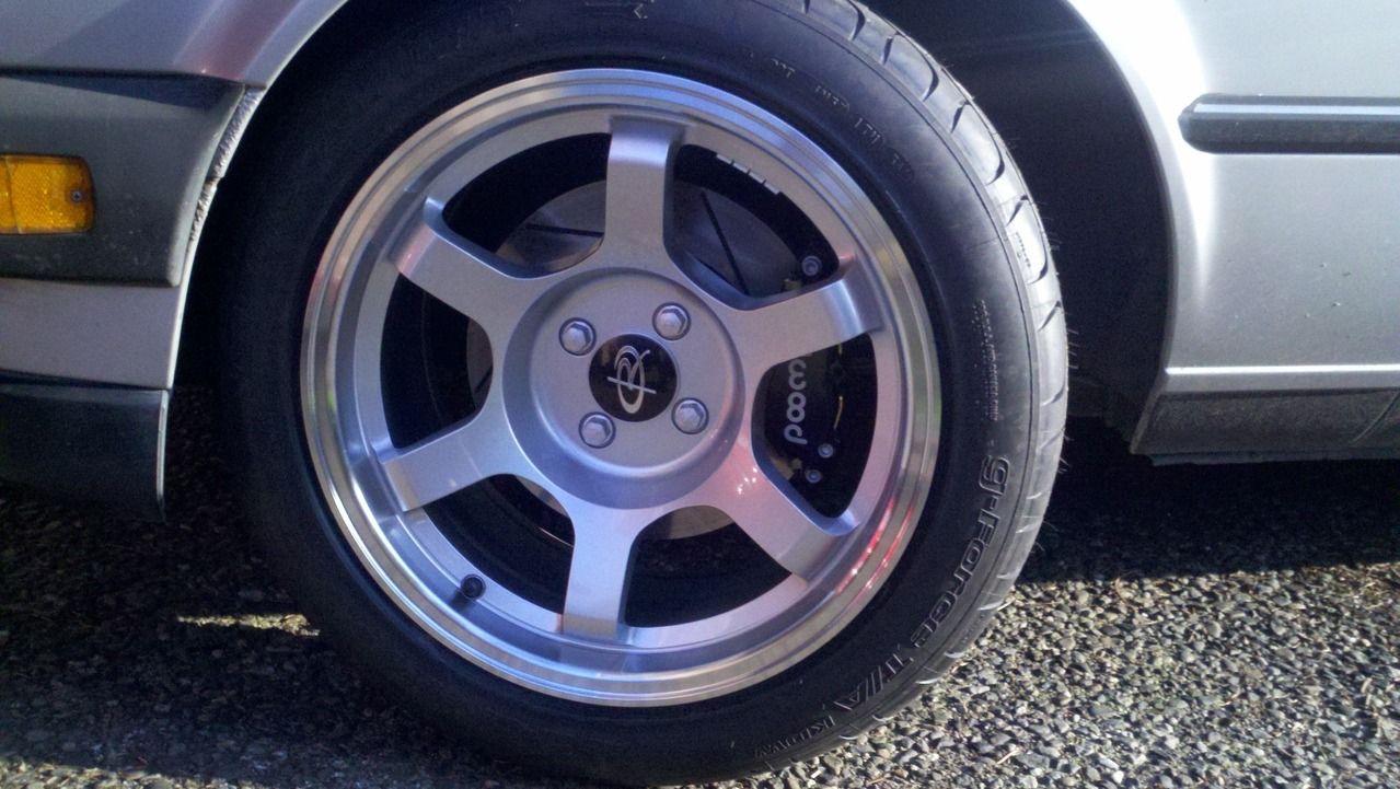 Looks good. What size wheels are they? And did you lower it? I'm in the process of putting mine together. Dropped the tank, fixed some holes, urethane subframe bushings, and adjustable rear 3" springs. Needless to say its been down for over a month now... _________________ E30