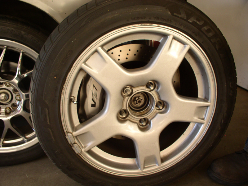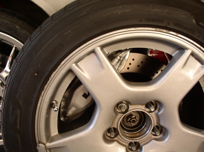 Rotors...mmm...Not a fan of the cross-drilling. When money comes up for it, I will probably order some nice custom 2-peice floating rotors from Coleman Racing, the pad just hangs off the inside edge of the rotor face, so hopefully at some point, i can solve that with some diffrent rotors.