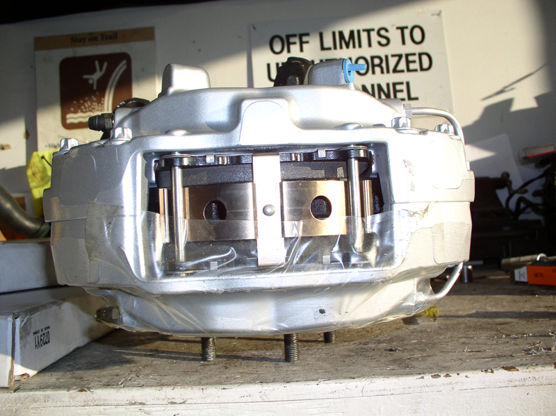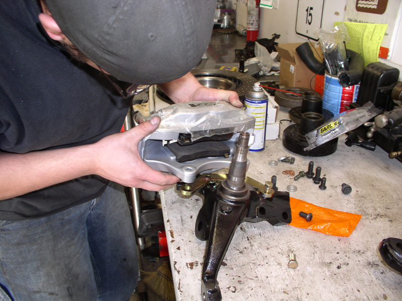 A nice shot of the calipers and pads, while paul was still setting stuff up to make sure everything lined up.