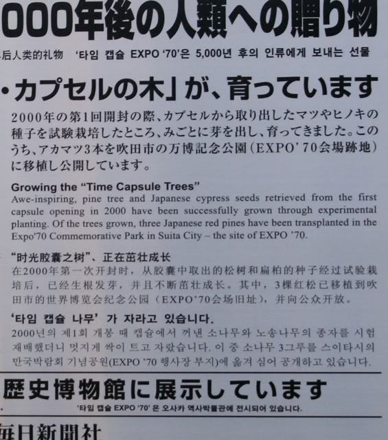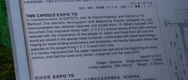 Osaka was the site of Expo 1970, and at the Castle Park, there is a time capsule placed in part by my parent company Matsushita Electric Industrial Co.