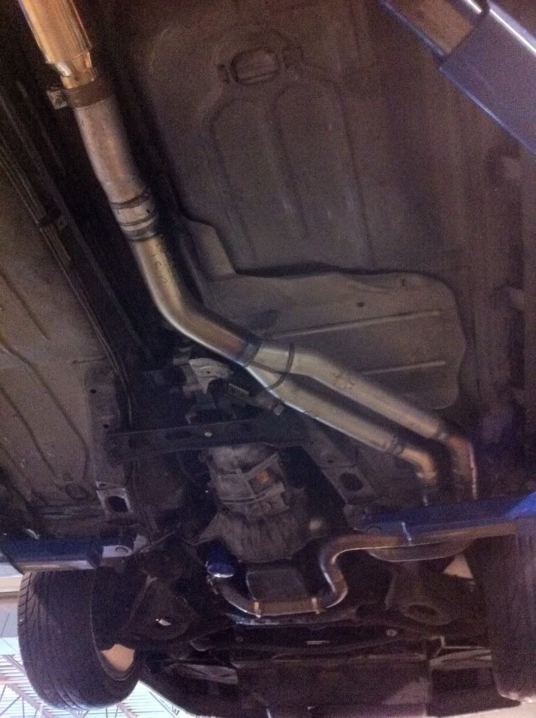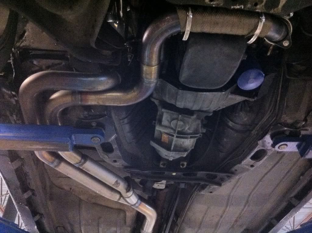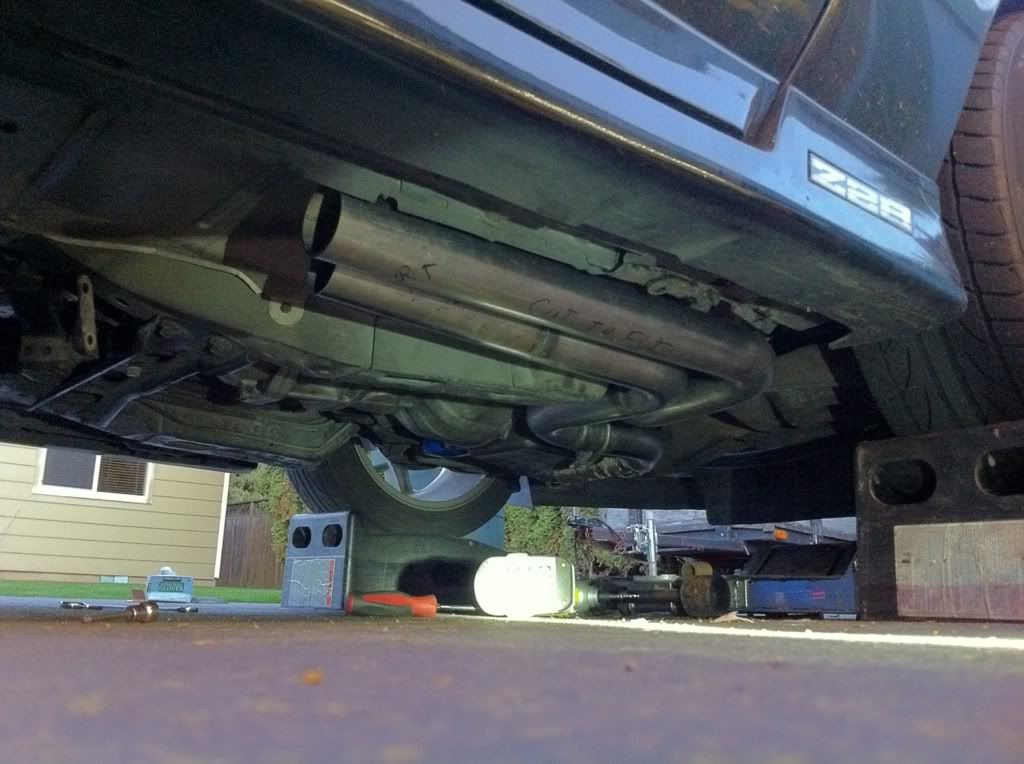 Dyno Don's headers and Y-pipe were just around $700. A friend of a friend did the welding and made the 2-1 merge for me. I paid $100 for him to do his stuff. Clearance is pretty tight around the front right corner of the subframe by the RF tire, the pipe has about .75" of clearance to the subframe, but there is no contact and no rattling/vibration. There's still plenty of space above the pipes to the floor. Enough room to have SFC's, yet they still tuck up higher than the subframe. The lowest part of my exhaust is now my muffler in front of the axle.