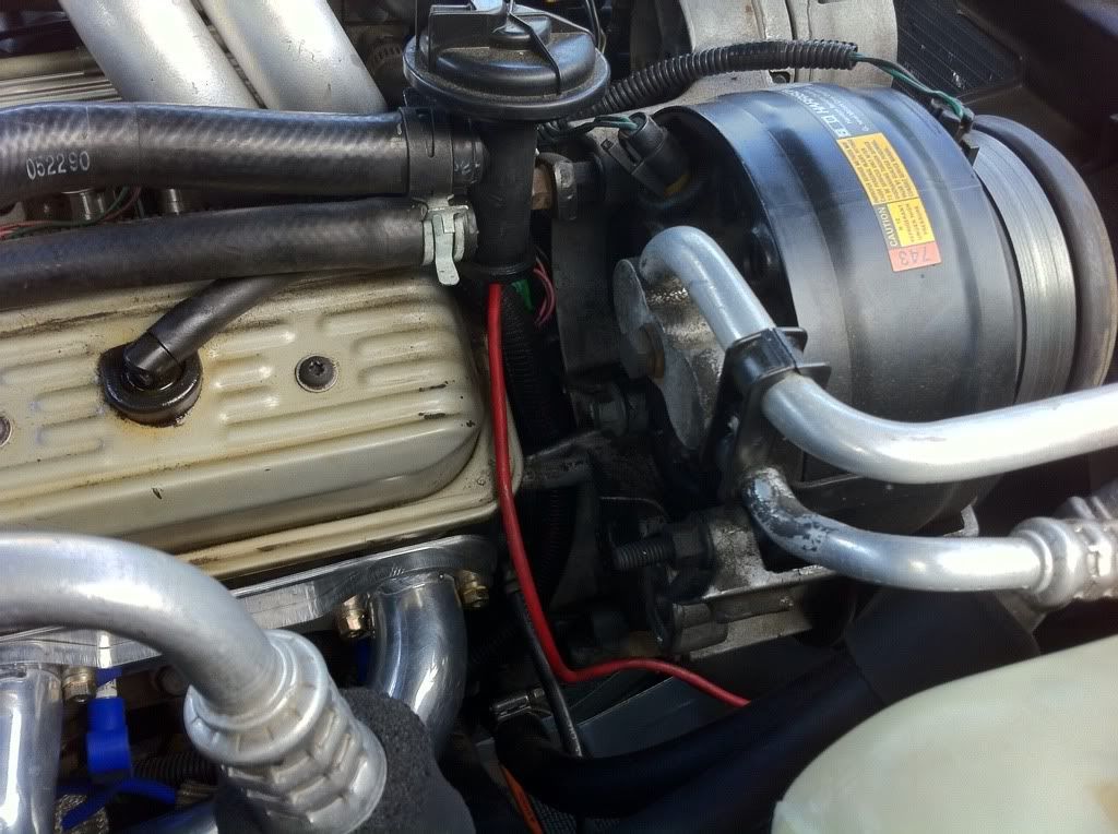 The drivers side was much easier. After removing the manifold, I unbolted the steering shaft and rerouted the brake lines to the outside, as close the the strut tower as possible. The stock O2 sensor wire worked just fine, I just had to reroute that portion of the harness too and slthrough connector for the CTS through the gap between the motor mount and block, that way it can't come anywhere near the primary tubes. I also routed all my spark plug wires under the headers tight against the block and used some protection sleeves. I like the fact that they're hidden and out of the way.