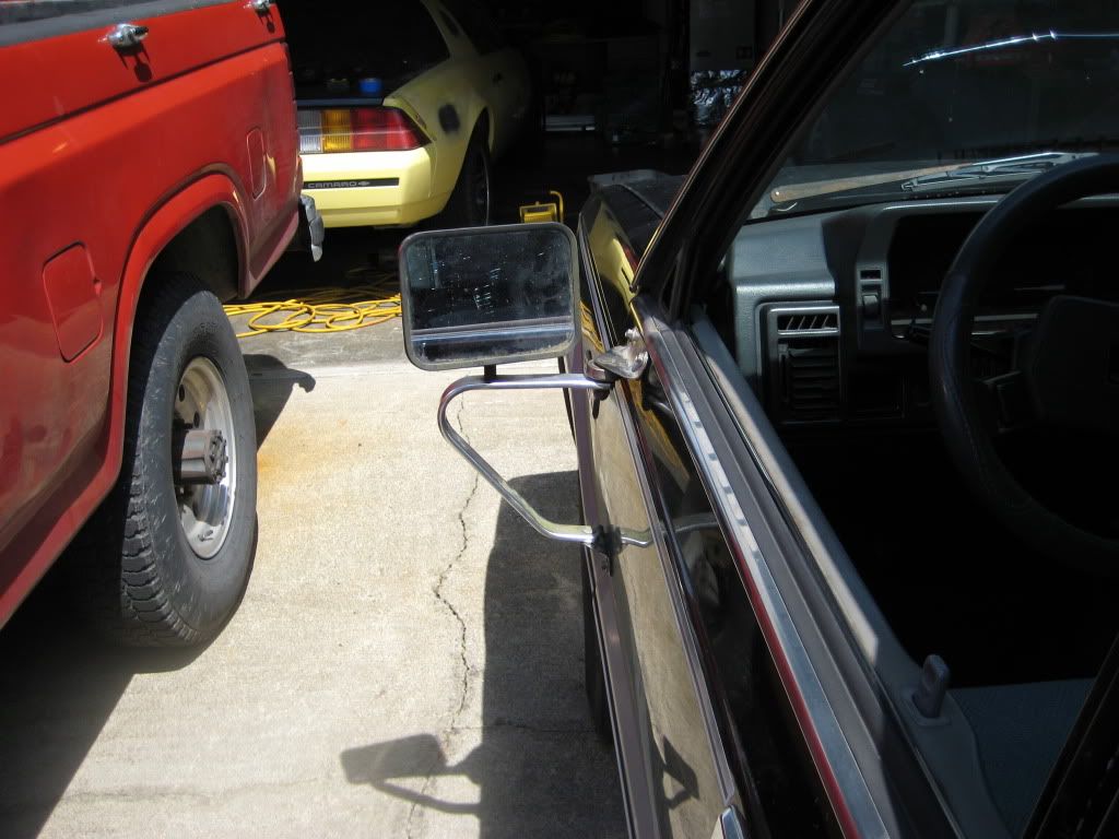 I have driven vehicles with only one mirror, and a vehicle with no external mirrors (stock) and I am not about it. Hell, I even took the silly car-style mirrors off the Mazda and swapped on baby towing mirrors: